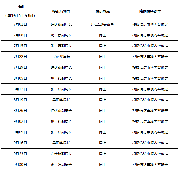 2022年第三季度局领导信访接待日安排